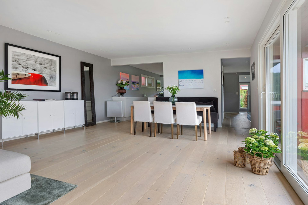 Gulvet er ofte det største træelement i et rum – og derfor det naturlige udgangspunkt for resten af indretningen. Har du et lyst egetræsgulv, kan du roligt kombinere det med andre lyse træsorter som ask eller birk for et nordisk, luftigt udtryk. Et mørkt gulv i fx røget eg eller valnød kalder på møbler og detaljer, der enten matcher i dybde eller skaber kontrast med lysere overflader. Hvis du er i tvivl, så vælg møbler i samme tone som gulvet, men i en anden glans eller struktur – det giver variation uden at bryde harmonien.